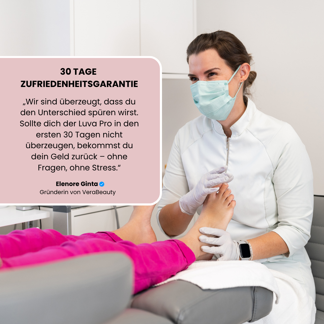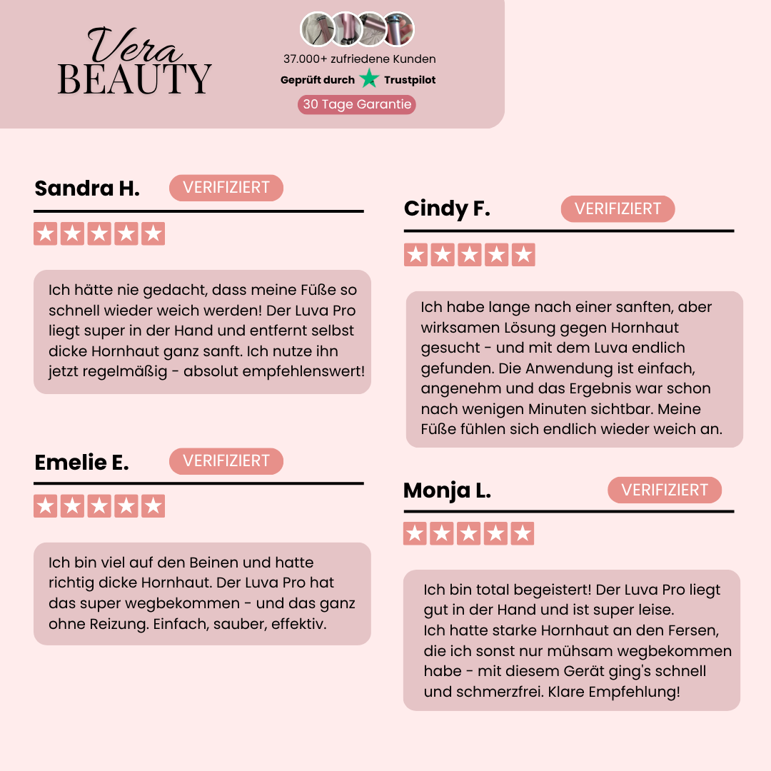 Die Lösung: Luva Pro entfernt dicke Hornhaut sanft und gründlich. Mit zwei Geschwindigkeitsstufen und wasserfestem Design sorgt er für seidig glatte Füße – bequem von Zuhause aus!